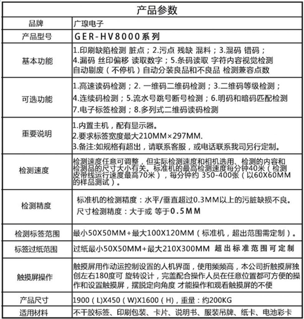單張品檢機型號:GER-HV8002
